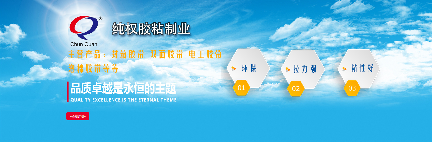 当涂县纯权胶粘带制品厂创于2002年,经过多年的精心培育,已发展成集研发、生产、销售为一体的现代化、专业化、规模化胶粘带产业,主要生产“纯权”牌封箱胶带、美纹纸胶带、纤维胶带、泡棉胶带、海绵胶带及其它专用胶带等。公司占地70多亩,厂房达30000多平方米,拥有目前国内最先进全自动现代化涂布生产线十几条,以及在线检测、制胶、印刷、分切、包装等设备三十多台套配套;目前公司在岗人员200多名,其中大专以上学历100人,高工14人,工程师22人,助工38人,十年以上熟练工人达70多名,生产规模达到领先水平;产品畅销全国各地,创造了极好的品牌效应。